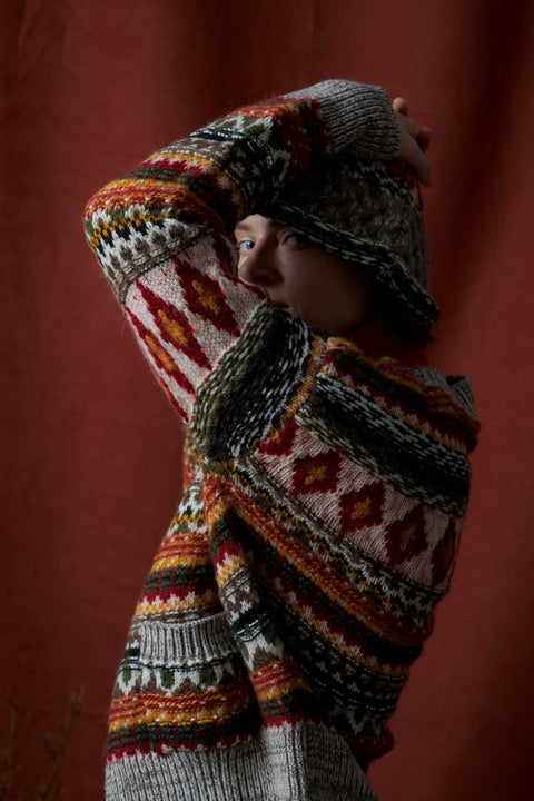 "Nostalgia Winter" is a captivating journey through time, seamlessly blending vintage charm with modern design sensibilities. Craft- ed with the utmost care and using premium materials like chunky yarn, retro-inspired patterns, and robust wool, this collection unveils an array of cozy knitwear.