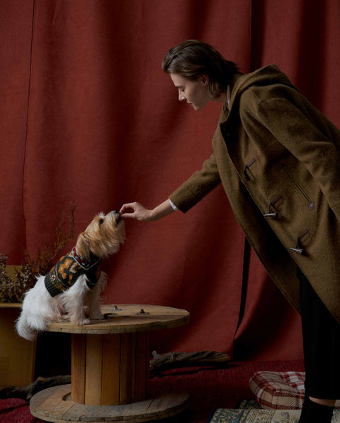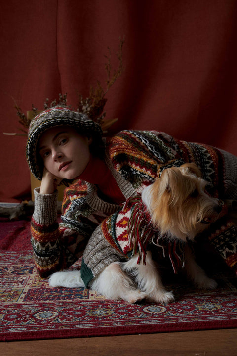 Each design pays homage to cherished mo- ments of yesteryears, with tassels and nostal- gic color palettes evoking a sense of nostalgia, as if you've stepped into a wintertime fairy tale from the past. We've seamlessly woven vintage elements with contemporary styles to create unique patterns and cuts, ensuring that you and your beloved pet will exude unique charm in the chilly winter season.