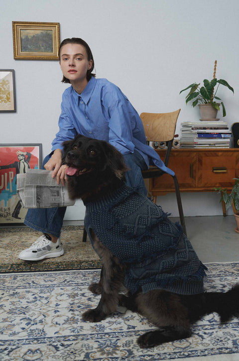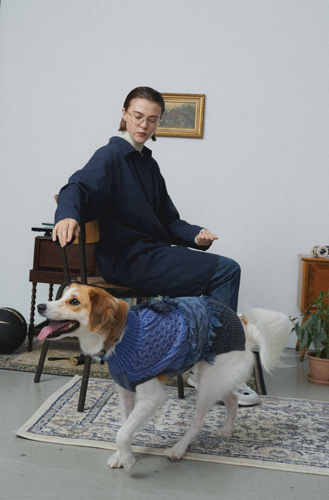 This collection unites elements of fashion, workwear, and art to offer a unique and avant-garde style. It allows pets and their owners to showcase their person- alities in a visually striking manner. These designs not only serve as a fashion statement but also pay tribute to the art of denim craftsmanship and the exploration of visual aesthetics.