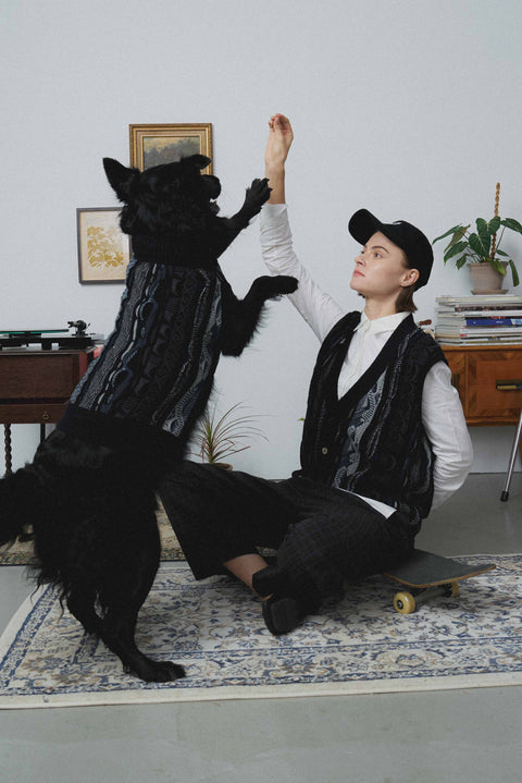 This collection isn't just a series of sweaters; it's a collection of heartwarming memories with your pets. Whether you're by a warm fireplace or out in the cold wilderness, these garments not only offer comfort and warmth but also transport you back to those memo- ry-filled winter days.